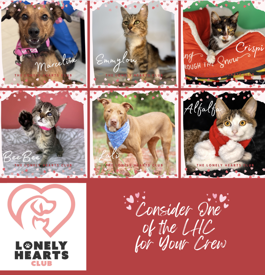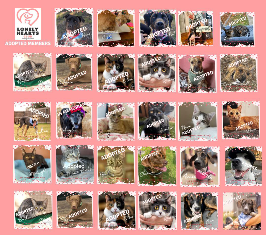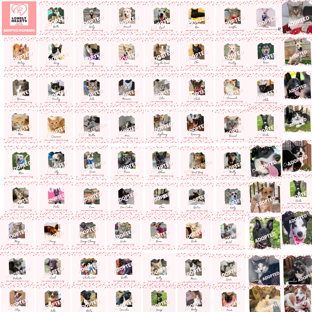 Your $10 monthly donation helps provide food for our Lonely Hearts Club members and helps sponsor their adoption fee.