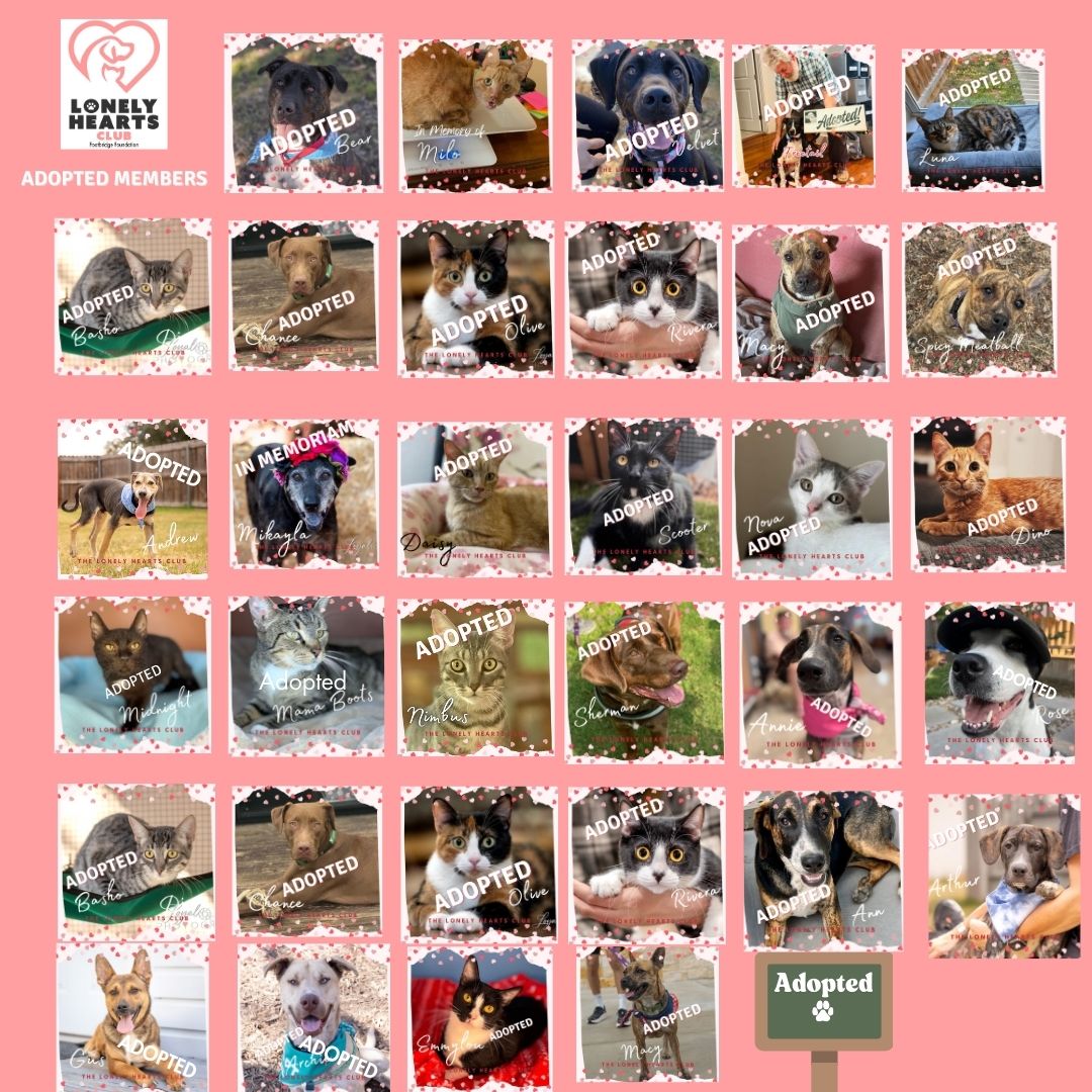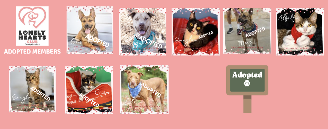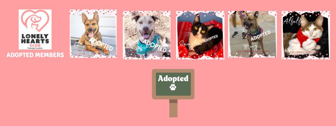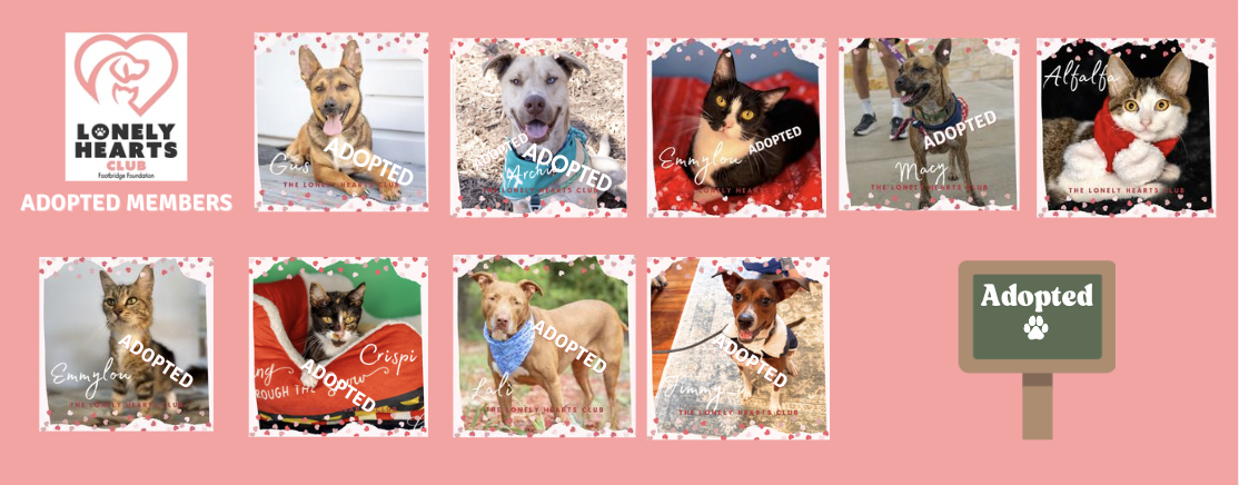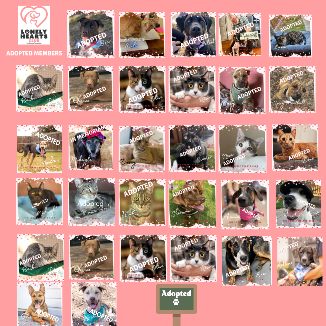 Your $10 monthly donation helps provide food for our Lonely Hearts Club members and helps sponsor their adoption fee.