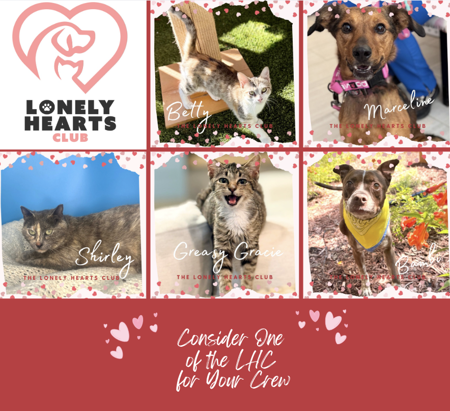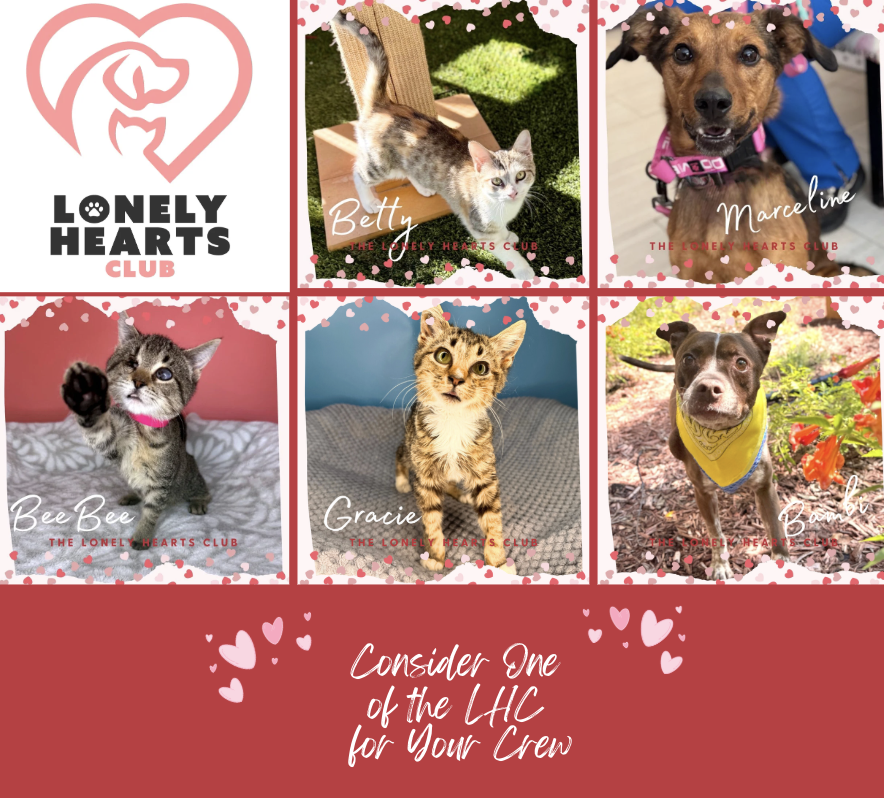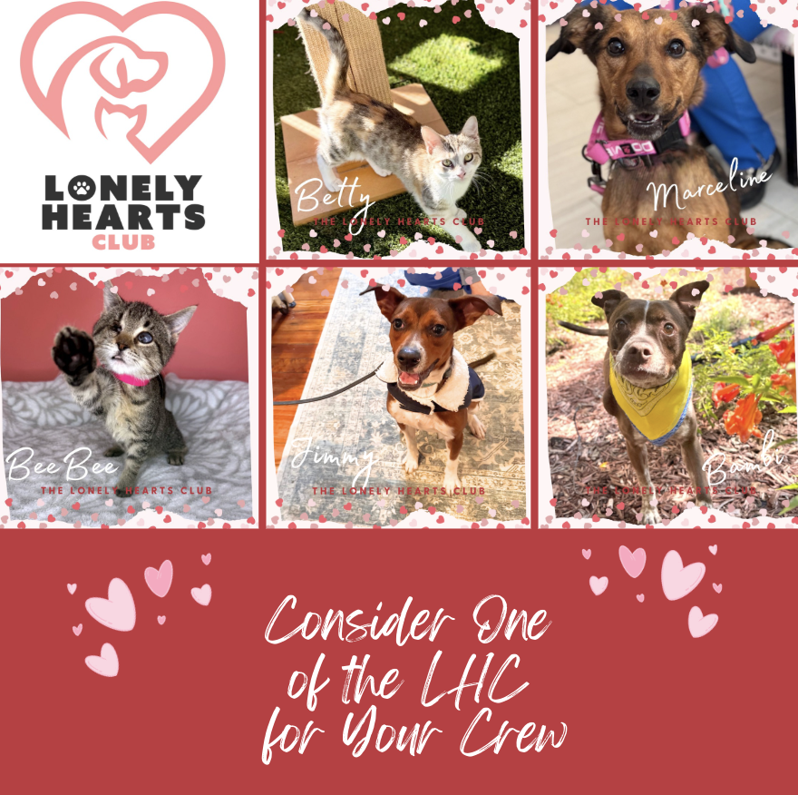 Your $25 monthly donation helps provide microchips and prevention medication for our Lonely Hearts Club members and helps sponsor their adoption fee.